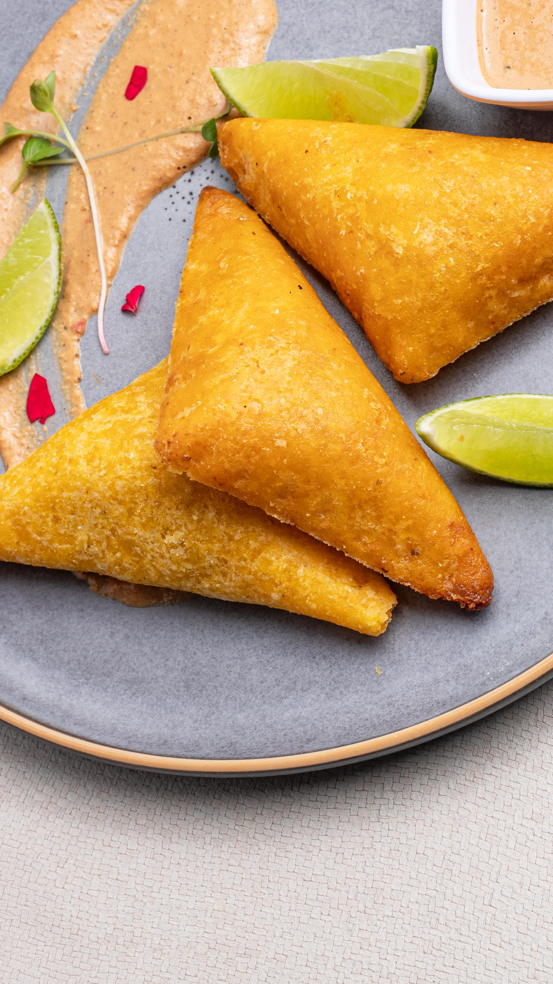 Deliciosas empanadas de maíz rellenas de carne acompañadas de ají de maní y limón.